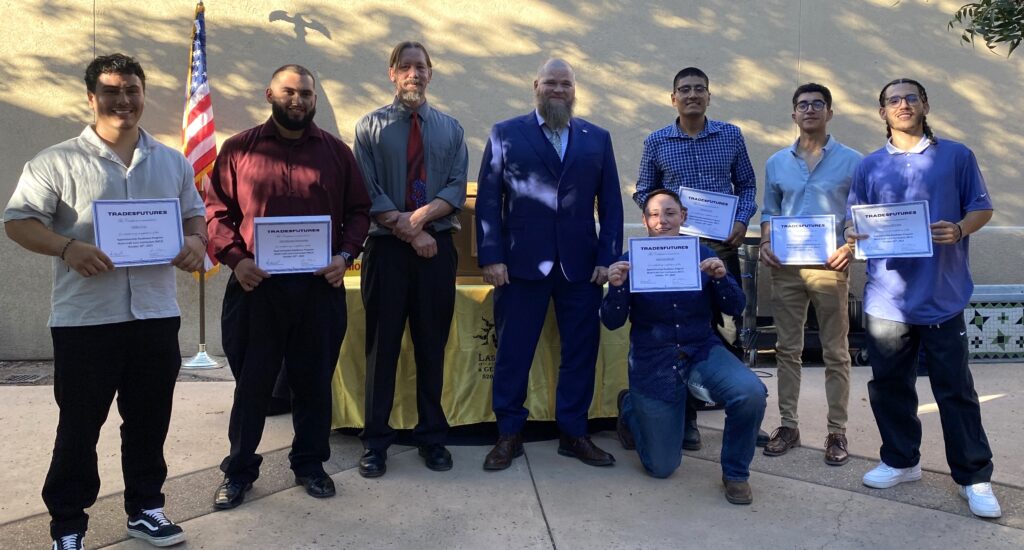 Congratulations to the first cohort to graduate from the Trades Build Futures Apprenticeship Readiness Program coordinated by AZBTC in partnership with Las Artes Arts and Education, Pima County Community and Workforce Development, and SER Jobs for Progress. Students Albert Morales, Armando Arellano, Demitria Wendt, John Fraire, Jose Manuel Hernandez, and Julian Cruz completed the accelerated six-week program and celebrated with family, friends, community leaders, and instructors.